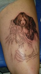Nell a écrit:Je viens très récemment faire mon 2e tatouage, après de nombreuses recherches sur le thème du "sombre" mais pas glauque je suis retombé sur une image de Sylvanas en image de synthèse très bien faite. J'ai donc fait le choix de me faire tatouer cette image avec quelques modifications. Je vous envoie ces images marquant la progression du tatouage et espère pouvoir faire partager ces 2 passions que sont le tatouage et l'univers de World of Warcraft aux visiteurs de votre site.