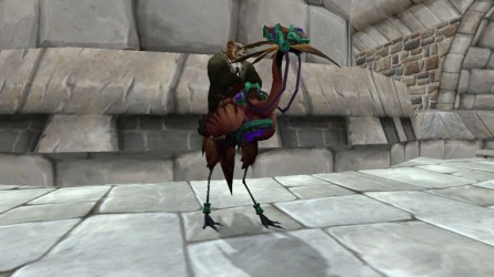Enfin, bêta-testeur nommé Inico a découvert une nouvelle monture terrestre, la Crane Mount. Cet oiseau échassier existe en six coloris différents. Cet objet n'existe pas encore dans la base de données du jeu, d'où l'absence de lien WoWHead. Les images qui suivent ont été filmées sur un serveur sandbox et non sur la beta officielle. Nous ne connaissons encore rien sur cette monture, ni de la façon dont elle pourra être obtenue.