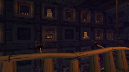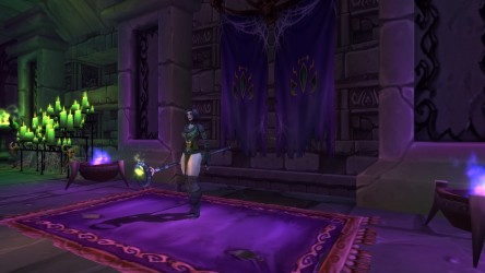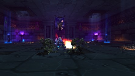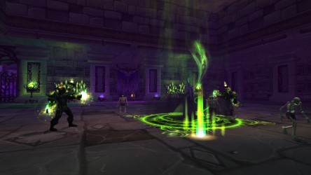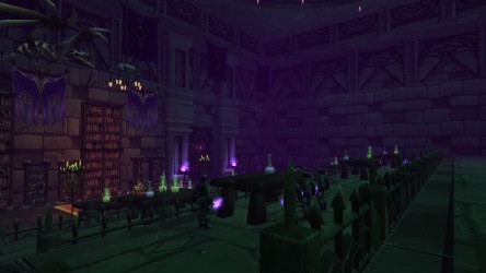 - Les graphismes ont été améliorés de façon à rendre cette version de Scholomance encore plus glauque : têtes fantômatiques apparaissant sur les murs, candélabres aux gangreflammes vertes, nouveaux effets de sorts... La Chambre des Visions est à présent une véritable salle de classe et non plus une sorte de cour de récréation, avec son lot d'étudiants qui s'ennuient, de pupitres, d'images morbides et de potions.