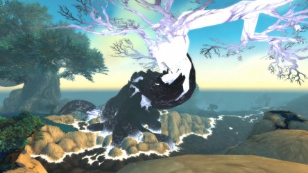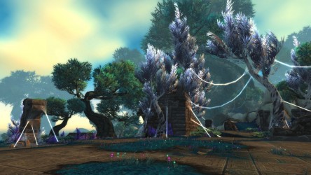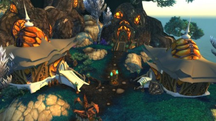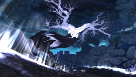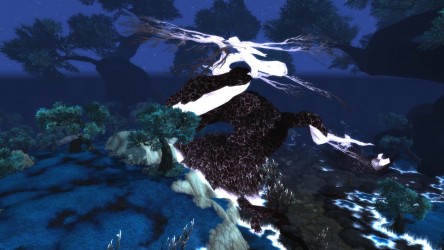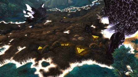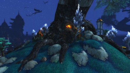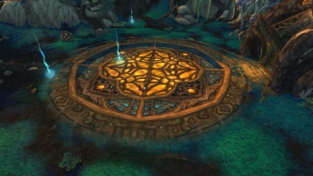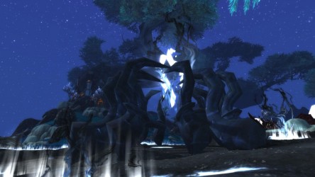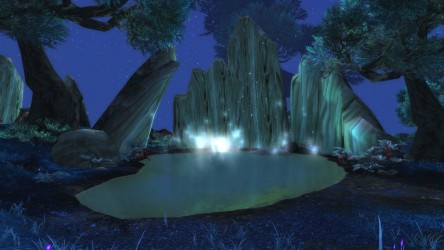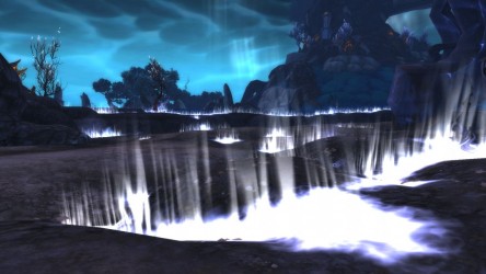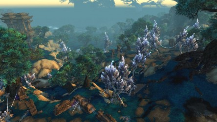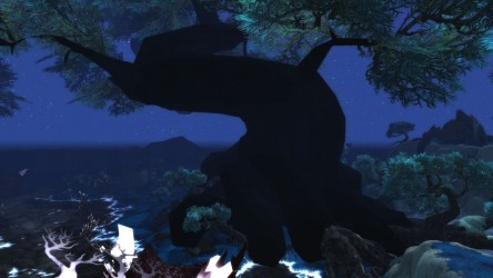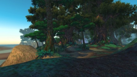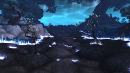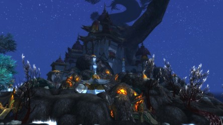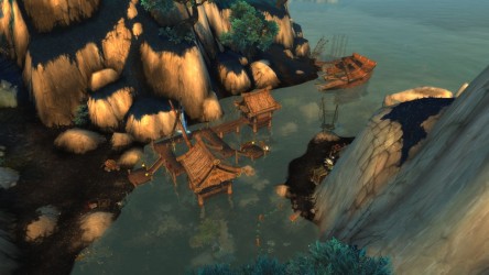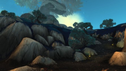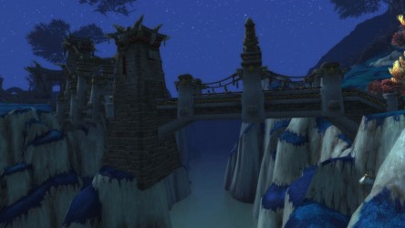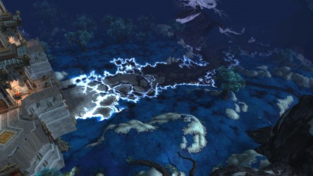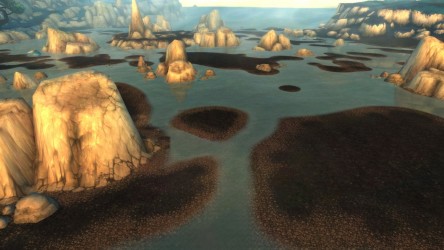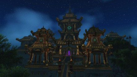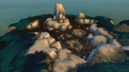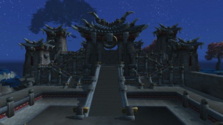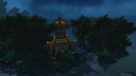 Aléquia de la RIdPEF vous propose de découvrir deux nouvelles zones en cours de développement de Mists of Pandaria. Le programme de la visite de cet après-midi concerne les Terres de l'Angoisse, une zone destinée aux niveaux 89 à 90 ainsi qu'une île mystérieuse. Cette dernière se trouve au nord du continent et vous remarquerez que le sol ressemble à celui de Krasarang. Quant au bâtiment du centre de l'île, c'est le Mogu'shan palace, probablement un placeholder.