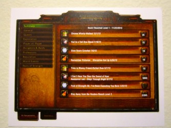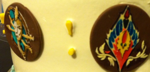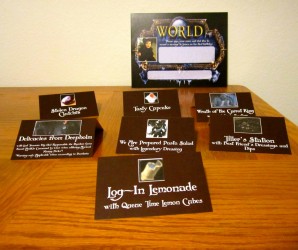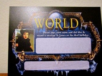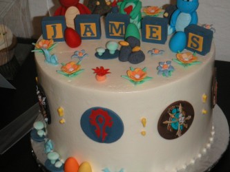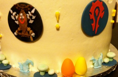 Rien n'a été mis de côté à commencer par le gâteau, dont le revêtement a été réalisé par Sarly de Sweet Cake Topper qui a déjà quelques réalisations geek à son actif. Les activités n'ont rien à envier à Un Dîner Presque Parfait : pêche à la ligne dans une piscine gonflable transformée en fontaine de Dalaran, haut-faits, loots et même un jeu mettant en œuvre des cartes représentant des personnages de Warcraft. Les boissons sont aussi de mise puisque l'on peut y voir quelques breuvages comme de la Réserve spéciale de Sombrelune. Je me demande quel goût ça a.